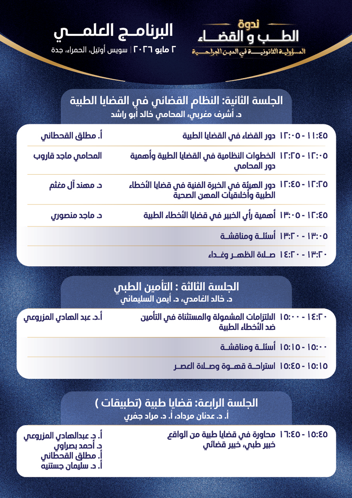 الموقع: Swissôtel Living Jeddah – قاعة كريستال (Crystal Hall)، حي الحمراء التاريخ: السبت 2 مايو 2026